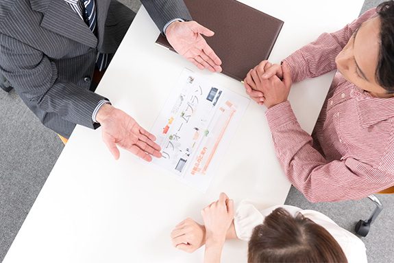 初めてリフォームをされる方は、わからないことも多く、戸惑いがあることと思います。このページでは、お客様が気持ちよく、後悔せずに、100%満足いくリフォームを行うために、踏まえておきたい流れを説明いたします。